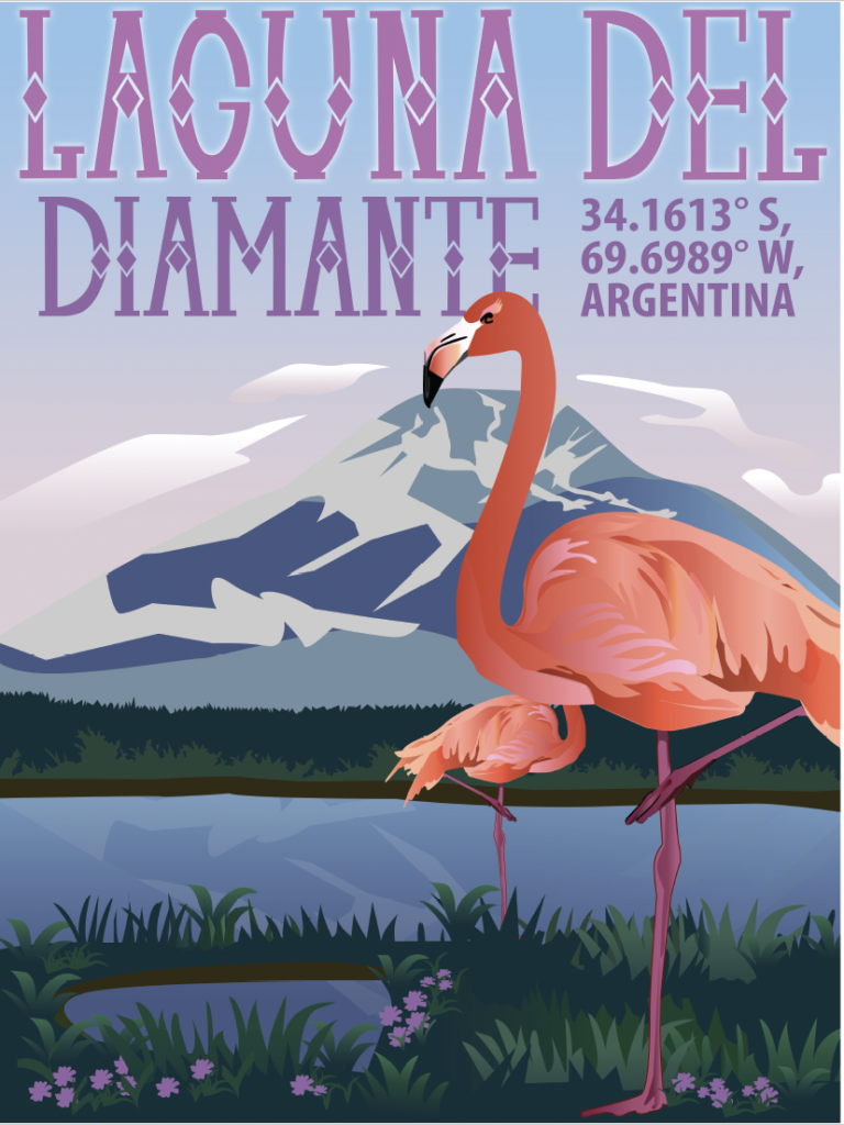 The final poster integrates these ideas through the typography and visual composition, while also referencing the area’s unique wildlife, including the flamingos that inhabit the region.