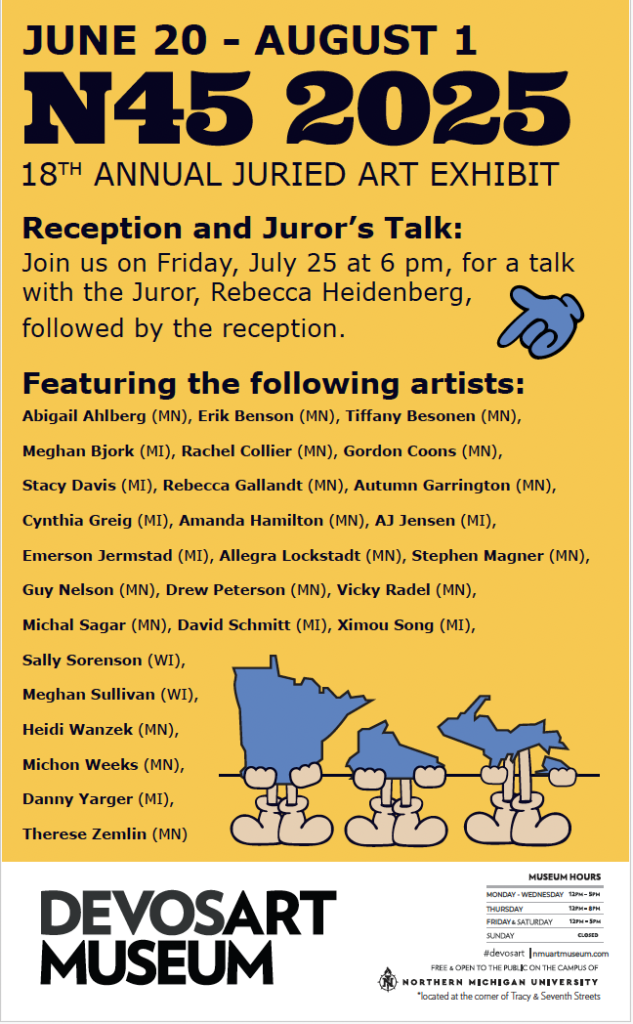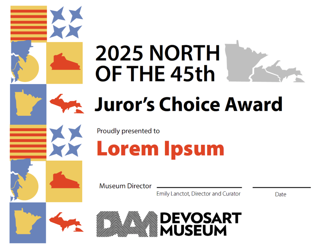 North of the 45th is an annual exhibition at the DeVos Art Museum, now in its 19th year, showcasing artists from Upper Michigan, Minnesota, and Wisconsin. To increase artist submissions, I designed a cohesive call for entries campaign, including a poster, postcard, and advertisement.